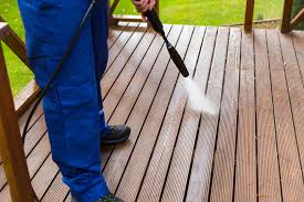 Services include removing dirt, mold, algae, mildew, and stains from wood, concrete, composite, or paver surfaces using proper cleaning methods.